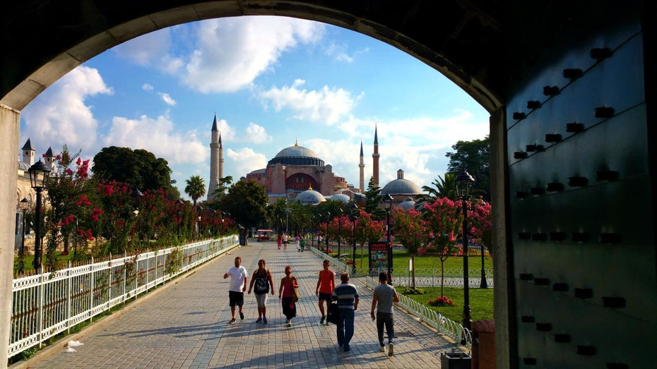 Vor der Hagia Sophia stand leider eine sehr lange Schlange, mindestens 60-90 Minuten Wartezeit.